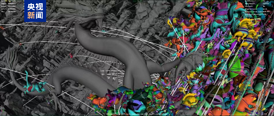 团队负责人汪巍蔚介绍,这50台解算高性能工作站,每帧渲染32小时,光渲染时长就高达15天。“不仅要求规模宏大,而且特效效果要有节奏、韵律美,要符合东方瀑布的美感。”