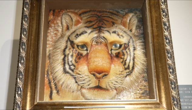 △撕毛技艺制作的麦秸画作品《东北虎》