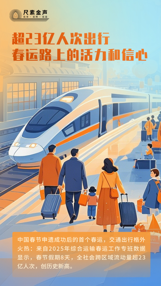 中国春节申遗成功后的首个春运,交通出行格外火热:来自2025年综合运输春运工作专班数据显示,春节假期8天,全社会跨区域流动量超23亿人次,创历史新高。