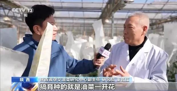 陕西省杂交油菜研究中心负责人 陕西省油菜产业技术体系首席专家 穆建新:我们创制出了含油量66%的种质资源,目前是全世界最高的。土地面积不变,但是产油量提高了25%,那我们就是相当于多种了25%的油菜。通过杂交育种技术,保障食用油供给安全。