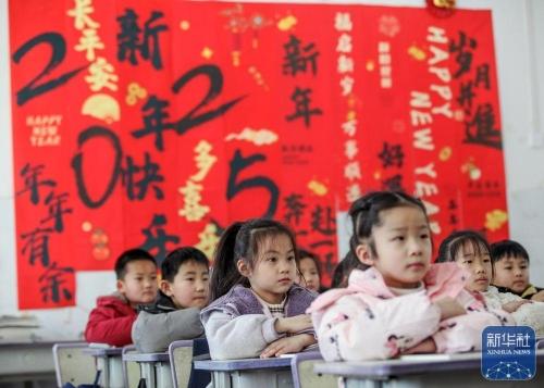 2月14日,在河南省焦作市博爱县清化镇街道七街小学,学生在听课。新华社发(程全摄)