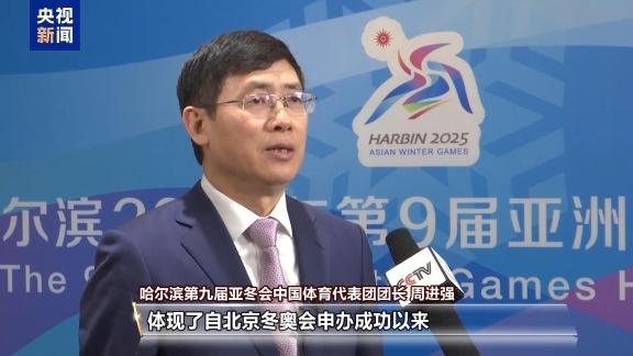 哈尔滨亚冬会中国体育代表团团长 周进强:体现了自北京冬奥会申办成功以来,我国冰雪运动全面发展态势,冰上、雪上项目发展日渐均衡、齐头并进,原有“冰强雪弱”的局面正在改变为冰上项目、雪上项目均衡发展。