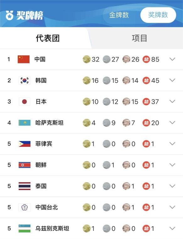 中国体育代表团共收获32枚金牌