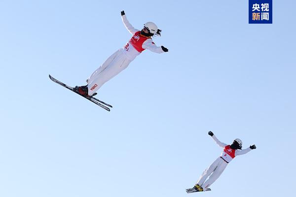 在自由式滑雪女子空中技巧双人同步决赛中