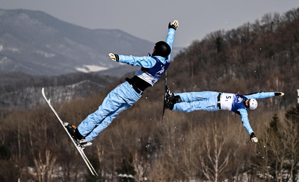 2月11日,哈萨克斯坦选手罗曼·伊万诺夫/谢尔佐德·卡希尔巴耶夫(左)在比赛中。新华社记者 夏一方 摄