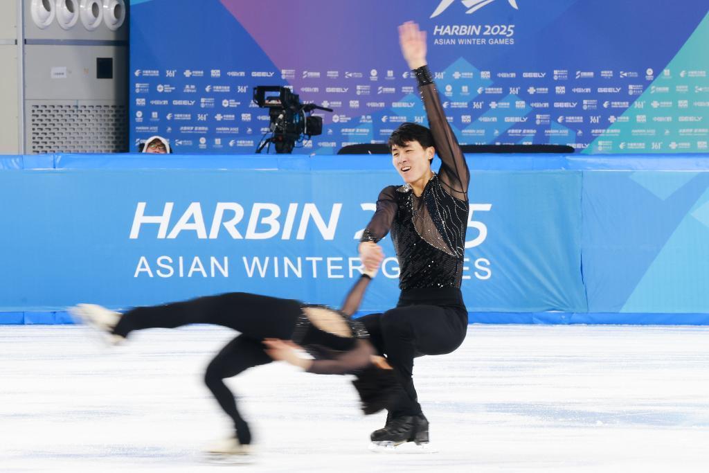 2月11日,朝鲜组合廉太钰/韩锦澈(右)在比赛中。新华社记者 许雅楠 摄