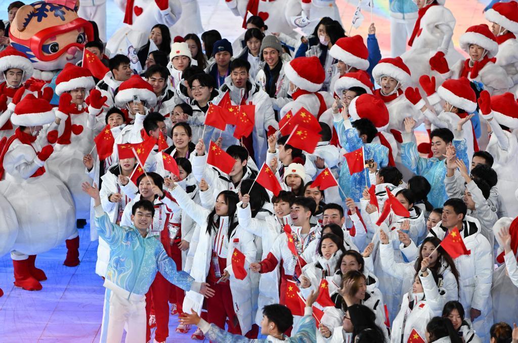 这是2月14日拍摄的各体育代表团入场环节。当日,第九届亚洲冬季运动会闭幕式在哈尔滨举行。新华社记者 黄博涵 摄