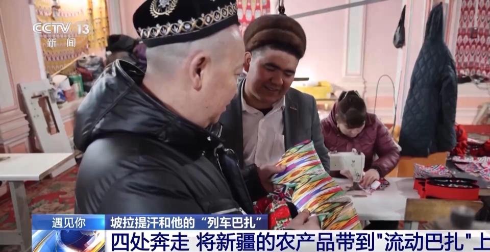 4年前,艾麦提和坡拉提汗车长在列车上相识,当时他的花帽厂因为经营不善差一点儿就要办不下去了。眼看小伙子创业要失败,坡拉提汗把他请到了“流动巴扎”上试一试。