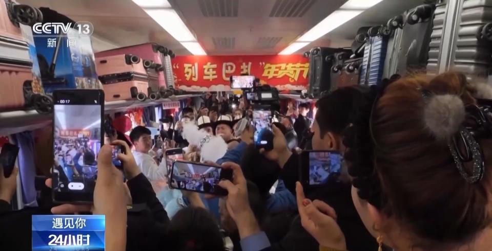 国铁乌鲁木齐局库尔勒客运段列车长坡拉提汗:他们卖完以后,我特喜欢跟他们一块儿跳起来。有时候,人特开心的时候,表达不出来,我最大的表达方式,还是新疆人的方式,跟他们一起跳起来。