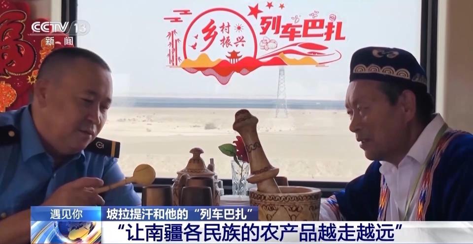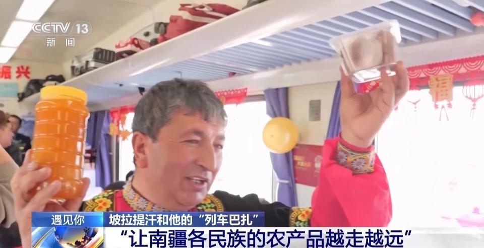 国铁乌鲁木齐局库尔勒客运段列车长坡拉提汗:南疆好多农民需要我们的帮助,能不能通过我们的公益小慢车,把农产品在车厢里面销售。库尔勒客运段党支部研究完了以后,他们说可以,也是大力支持我。