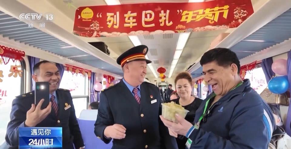 国铁乌鲁木齐局库尔勒客运段列车长坡拉提汗:欢迎大家坐我们和田开往乌鲁木齐的7557/7558次“和田玉龙号”列车!我们7557/7558次春节之前,每十天搞一次“列车巴扎”年货节,我们今天年货节的主题是,公益助力,乡村振兴。我们最大的目的是,通过我们“和田玉龙号”公益小慢车,让南疆各民族的农产品越走越远!喜欢农产品的同志们到11号、12号车厢选购自己喜欢的产品。