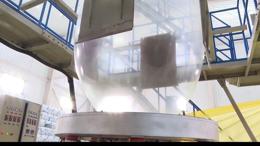 在乌苏市利农泽恒地膜厂,生产车间内机器轰鸣,6条生产线满负荷运转,日生产能力23吨。工人们娴熟地完成卸卷、称重、包装打包及码放等工作,现场忙碌而有序。