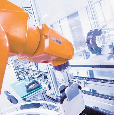 1万多个不同种类的元器件,“搭乘”无人搬运车,有条不紊地穿梭在218道环环相扣的产线中。“装配工”“操作工”“协调员”紧密配合,每天可生产150个“大脑”、800多只“眼睛”、300多条“胳膊”,组装起来的产品——工业机器人,经过“质检员”把关,就可以出厂了。