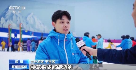 吉林游客于松民:我是从吉林来的,特意来成都旅游的。然后就想特意体验一下成都市内的滑雪场,没有想到今天在这儿看到这么大的一个滑雪场。