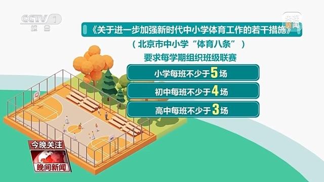此外,文件还首次在北京中小学全面部署全员参与、全过程参与的“班级赛”。要求每学期组织班级联赛,小学每班不少于5场,初中不少于4场,高中不少于3场。除了给体育课加量,还要提质。