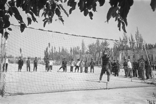 资料图:阿图什县依克沙克村农民在练足球(1985年5月24日发)。新华社记者 李广宽 摄