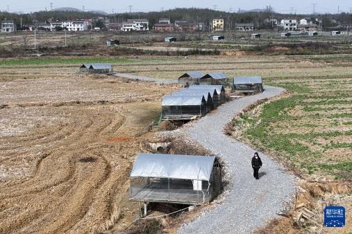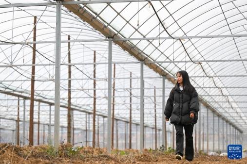 在湖北省赤壁市中伙铺镇安丰村,田淑娴在村里大棚内(2025年2月7日摄)。