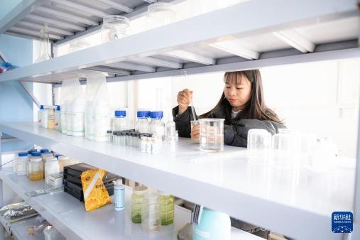 田淑娴在给鸭群调配益生菌(2025年2月7日摄)。