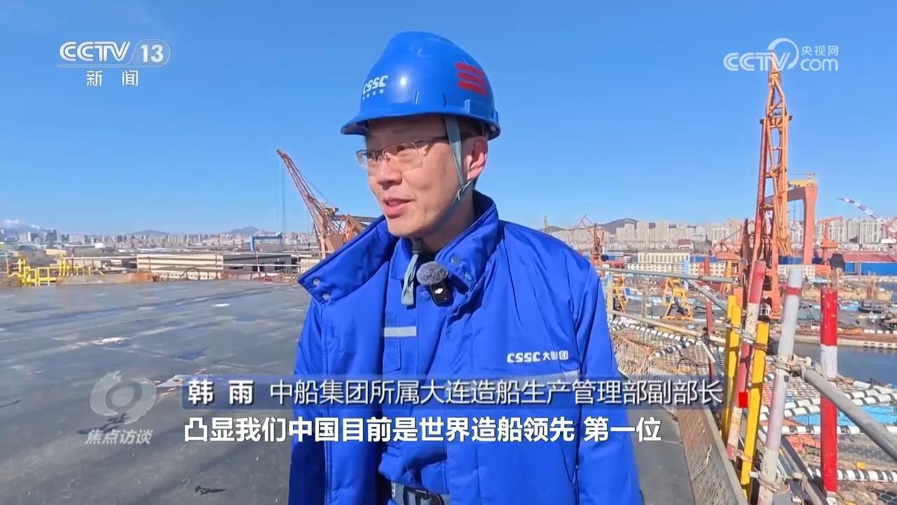 韩雨:“不光是复杂的海工项目,LNG(液化天然气)船也是造船界的三大明珠之一,现在大连造船也在建造,也自主研发设计。中国现在所有世界最难的项目都可以建造、设计,凸显中国目前是世界造船第一位。我们现在手持订单已经排到了2028年,后面的生产非常饱满。”