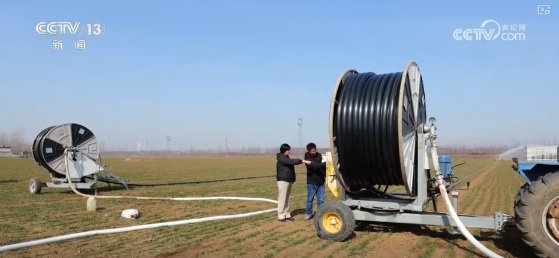 石墙镇面坊村种植户王昌松2025年种植了700亩小麦。他介绍,过去传统的大水漫灌每亩地要用水80立方米。现在用上了这种新型喷灌设备,每亩地用水减少到50多立方米,不仅节水,还降低了人工操作成本。