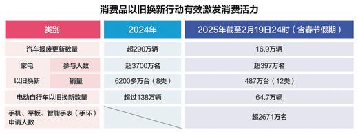 中央经济工作会议提出,“大力提振消费”“加力扩围实施‘两新’政策”。1月8日,国家发展改革委、财政部发布通知,扩围支持消费品以旧换新,将符合条件的国四排放标准燃油车纳入报废更新补贴范围,享受以旧换新补贴的家电产品由2024年的8类增加到2025年的12类,单件最高可享受销售价格20%的补贴;每位消费者购买空调产品由最多补贴1件增加到3件,并实施手机等数码产品购新补贴。1月15日,商务部会同相关部门发布《手机、平板、智能手表(手环)购新补贴实施方案》,1月20日起陆续实施。
