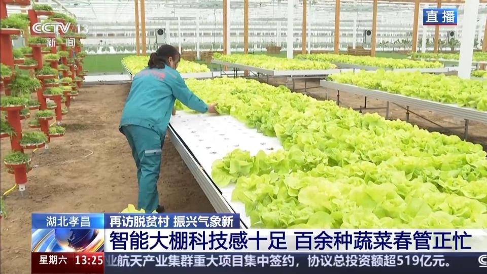 湖北孝感市孝昌县曾经是国家级贫困县,陡山乡江河村是当地的重点贫困村。通过因地制宜发展蔬菜种植,村子在2018年实现全村脱贫。近年来,随着蔬菜种植产业升级,村里建起了全环境智能温室大棚。眼下正是春耕时节,大棚里村民们正忙着为给蔬菜进行整枝抹芽、盘枝挂绳等田间管理。