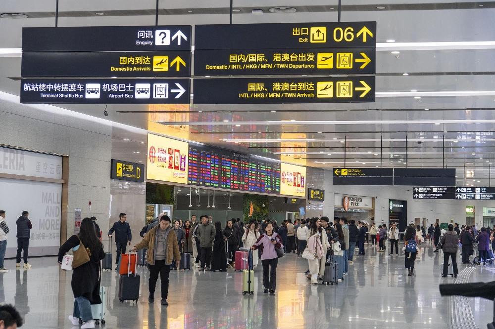 2025年2月16日,重庆江北国际机场,乘客人来人往。