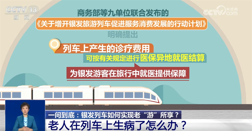 日前,商务部等九单位联合发布的增开银发旅游列车的行动计划明确提出,列车上产生的诊疗费用可按有关规定进行医保异地就医结算,为银发游客在旅行中就医提供了保障。