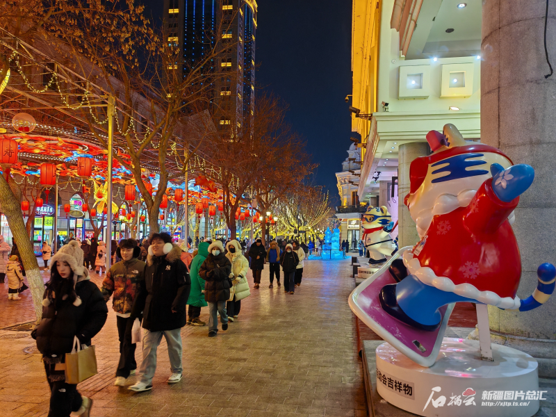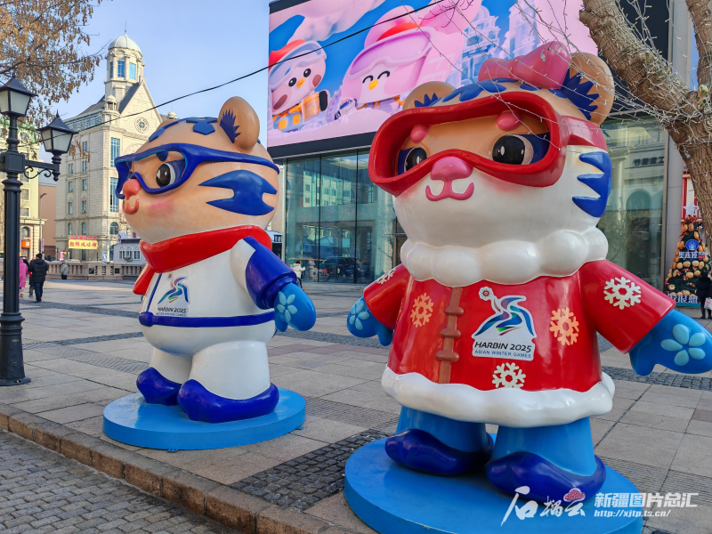 亚冬会的吉祥物让中央大街增添了几分萌宠。石榴云/新疆日报记者 黄兴 摄