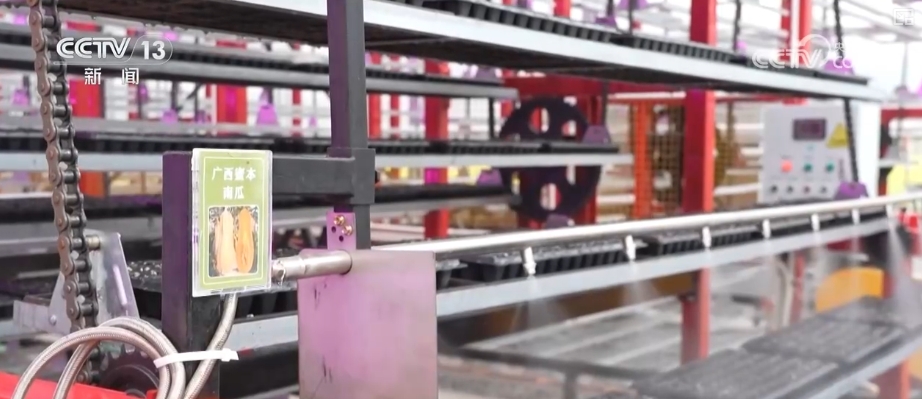 这种智能育秧苗床采取循环运动的方式,育苗盘会在苗床轴轮的带动下,匀速上下移动,均匀接受光照和水雾。