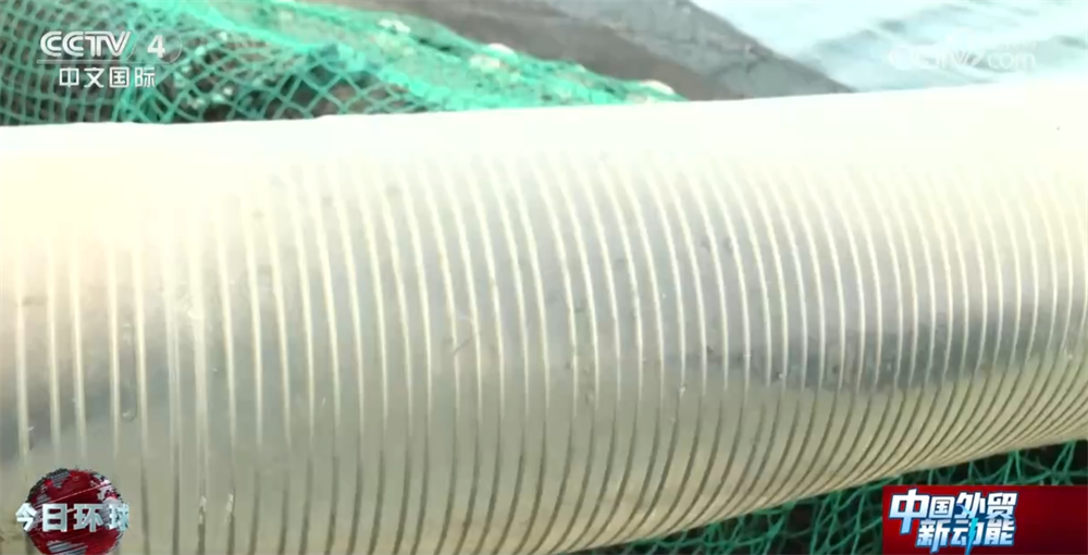 上午11时左右,工人师傅们忙着使用自动吸鱼泵将三文鱼捕捞上岸。一条条鱼儿像是坐上了电梯,轻柔平缓地进入了作业平台。相较于传统的吊网捕捞,这种方式能够大大减少鱼儿因为紧张挣扎所导致体内产生的大量乳酸,从而最大程度上保证鱼肉鲜嫩的口感。