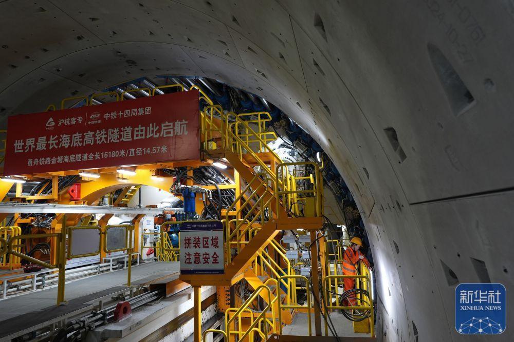甬舟铁路金塘海底隧道西起浙江宁波市北仑区,东至舟山市金塘镇,全长16.18公里,是世界最长海底高铁隧道。