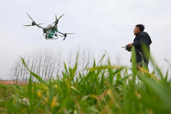 今年,当地种粮户们采用了许多农业新科技,多光谱无人机就是其中之一。这种设备可以通过光谱智能识别技术确定不同地块的小麦长势、计算出不同地块对肥的需求量变量施肥,进而为农户节约成本。