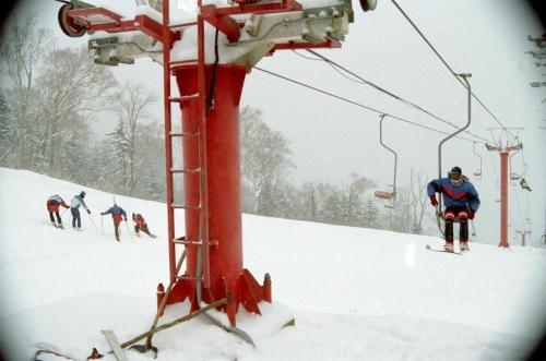 中国滑雪运动员们在黑龙江省亚布力滑雪场进行刻苦训练。(1992年2月1日发)新华社记者 周确 摄