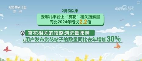 2月份以来,去哪儿平台上“赏花”相关搜索量同比2024年增长2.2倍。赏花相关的攻略浏览量骤增,用户发布赏花帖子的数量同比2024年增加30%。