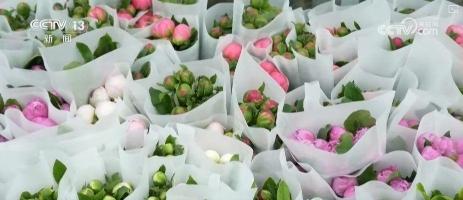 在山东菏泽,大棚里的一株株反季节催花芍药枝条伸展、绿叶葱翠。工人们手拿“标尺”和剪刀,剪下成熟的芍药鲜切花,再经过速冷、整理、包装,发往全国各地花卉市场。数据显示,2025年,菏泽芍药鲜切花预计总产量约1.2亿支左右。