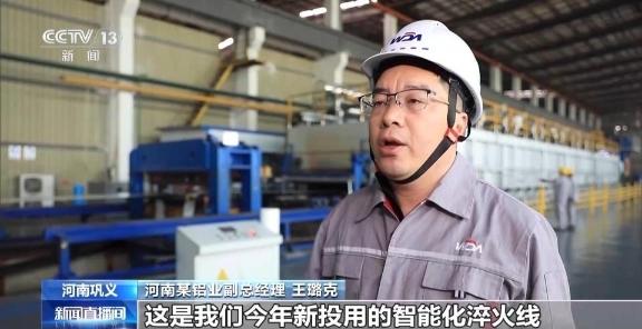 河南某铝业副总经理 王璐克:这是我们今年新投用的智能化淬火线,对比原有设备,产能由原来的一天150吨提高到了200吨,产品主要用于航空航天、电子设备、医疗器械等领域。现在是我们的产销旺季,大量出口到欧洲、东南亚等地。