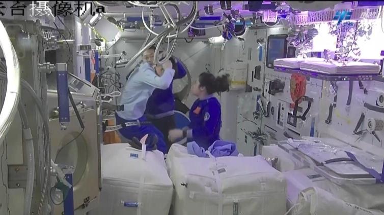 此外,乘组开展了空间材料科学、微重力燃烧科学等领域实验相关工作,完成无容器柜实验样品更换、轴心机构电极维护等多项操作。