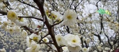 大家可能注意到,梅园里有几片山坡还是黄土露得比较明显。这是因为在几年以前,这里还是一片“风一吹就扬土,雨一下就淌泥”的荒坡。当地贯彻“绿水青山就是金山银山”的生态发展理念,引进生态修复和观光项目,先把土全部翻一遍,再全面消毒杀菌,再修复植被草坪。像那种坡度比较陡的地方就要等到下一步用人工来种草,耗时耗工。让这里的荒山复绿用了三年多时间,现在,这里不仅有梅花,还逐步培育了四季都能观赏的其他品种,打造“赏花经济”。你看,这是梅园用自己的梅花做的梅花糕、梅花酒,还有梅花画。家里爱种花的,还能带一枝这样的梅花回去做插花或者盆景。