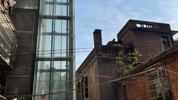 曾先生告诉记者,其所在的二号楼电梯,2024年就曾因出现故障维修了七八次,为此,居民们不得不时常“借道”隔壁单元的电梯,再从楼栋之间的连廊或天台走回家。