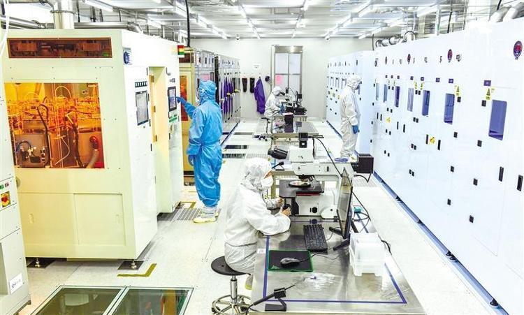 3月3日,在陕西铜川秦创原先进激光与光电集成产业创新聚集区,陕西宇腾电子科技有限公司里一片繁忙景象,工作人员全力制备新一代半导体氮化镓外延片。
