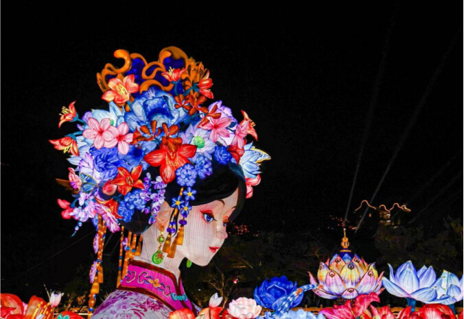 2025年粤港澳大湾区灯会上的《簪花女神》灯景。