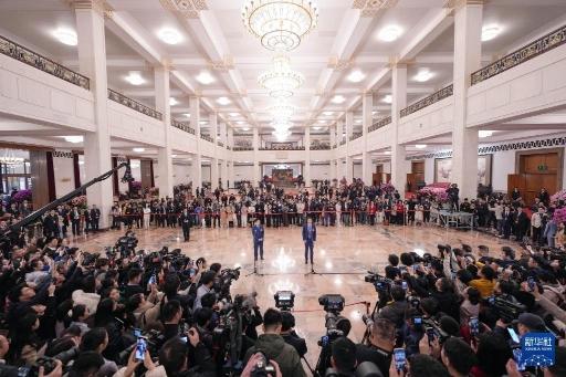 3月5日,第十四届全国人民代表大会第三次会议首场“代表通道”集中采访活动在北京人民大会堂举行。新华社记者 郑焕松 摄