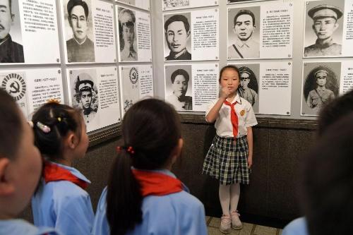 2021年5月12日,在井冈山革命烈士陵园,“小红军宣讲团”的成员周煜菡给前来参观研学的学生们进行义务讲解。井冈山小学把“红色德育”作为立德树人的重要抓手,成立了“小红军宣讲团”,培养了一批讲好红色故事、传承先辈精神的小小义务讲解员。