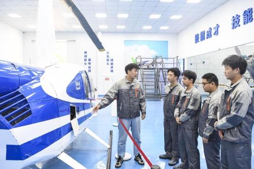 2024年9月25日,重庆城市职业学院航空学院教师(左一)在为学生们讲解直升机绕机检查的注意事项。近年来,重庆市永川区依托现代制造业基地和西部职教基地优势,推动低空产业领域的校企合作、产教融合,布局发展低空制造、低空管理、低空应用等低空经济产业,助推经济高质量发展。