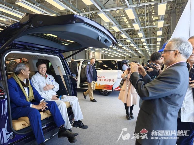 2024年4月9日,在广汽乘用车有限公司新疆分公司,有关国家智库学者和媒体人士代表团成员(左一)体验车辆的百变座椅功能(资料图)。天山网-新疆日报记者 范琼燕摄