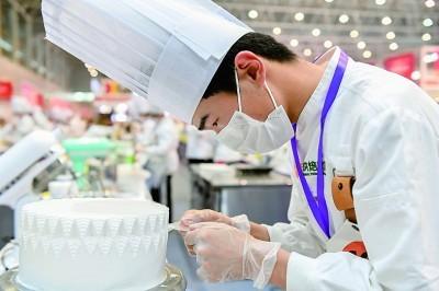 安徽省首届职业院校在校生创意蛋糕技术大赛比赛现场。袁兵 摄/光明图片