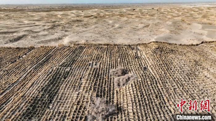 巴楚县境内一处防沙治沙现场。巴楚县融媒体中心供图