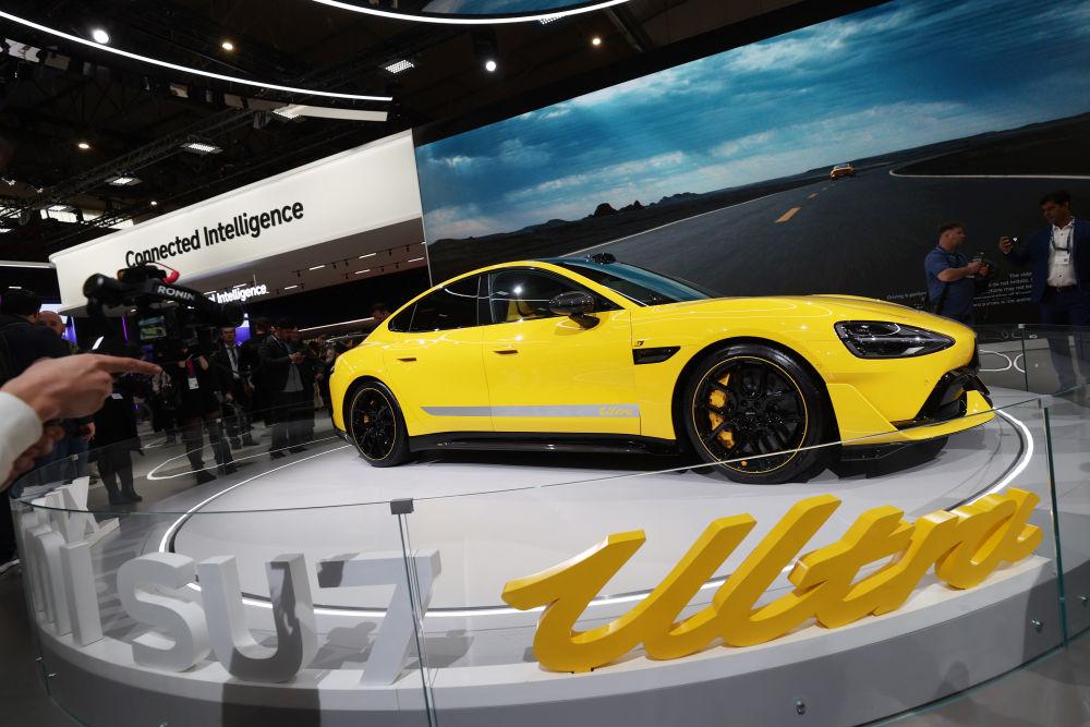 3月3日,小米SU7 Ultra汽车在西班牙巴塞罗那举行的2025年世界移动通信大会上展出。新华社记者 赵丁喆 摄