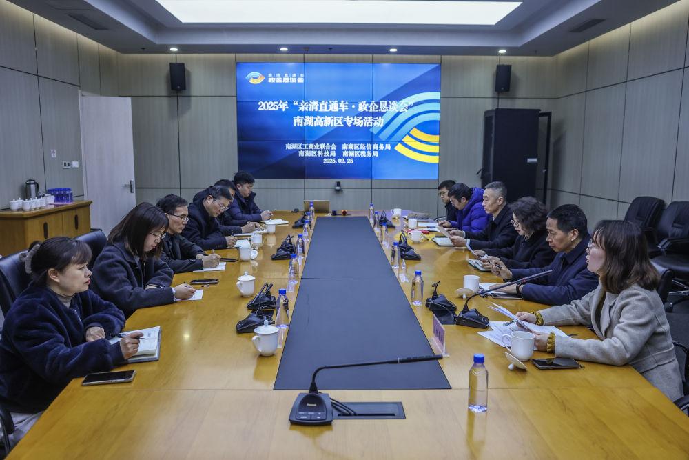 2月25日,浙江省嘉兴市南湖区工商联召开“亲清直通车·政企恳谈会”,为企业排忧解难,助力民营企业稳健发展。新华社记者 徐昱 摄